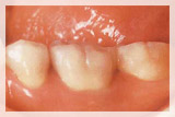 右奥歯に金属クラウン(冠)とインレー(小さな詰め物)。